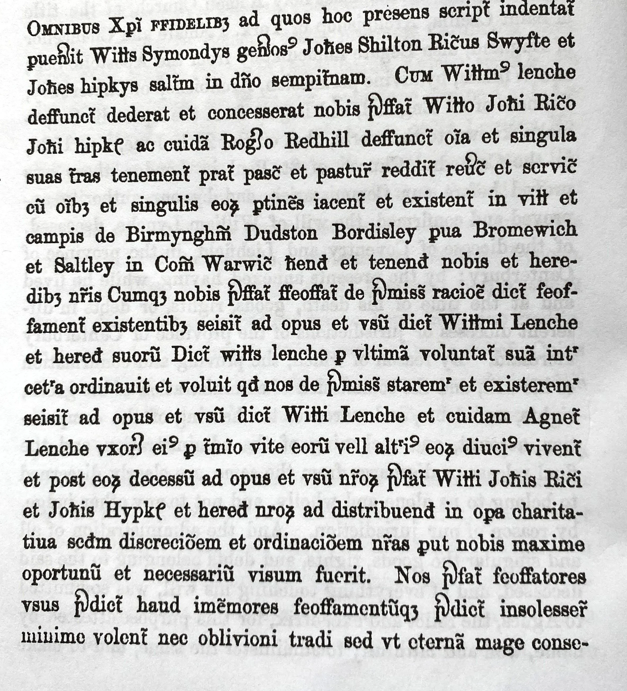 Amongst those taking advantage was Holte, probably one of the Visiting Commissioners appointed by the king to oversee the dissolution regionally. On the same day as Pye’s final release in favour of the Trustees, 6 April 1541, Holte did the same. The strength of the Trustees was underscored by their determination to challenge such a formidable opponent, yet it was only a partial victory because Lenche’s lands in Aston and Duddeston were not included. They were lost, in all likelihood, to Holte.
